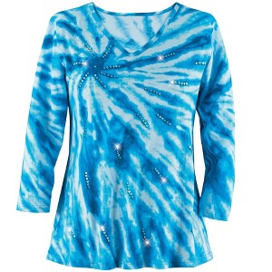 This Striking Knit Top Features A Swirling Tie-Dye Printed Design In Blue, A Flattering Scoop Neckline, 3/4-Sleeves And Sparkling Sequin Accents. Approx. 26"L. Hand Wash. 100% Cotton; Imported. Choose: M(10-12), L(14-16), Xl(18-20) Or Xxl(22-24).