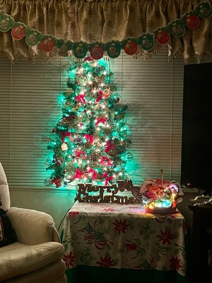 I have limited room in my townhouse so opted for a wall Christmas tree. I was totally disappointed in this item. It is a piece of junk. And it isn't even worth returning because it would cost me $14 to return it. I had a wall tree before that was beautiful, branches were full, multi colored lights, beautiful ornaments and ribbons. This tree was so flat that it was rolled up in the box, has gaps in the branches so wall shows through. Picture makes it look so much nicer than it is.