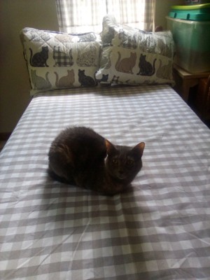 I have a spare room since my grandson left so I turned it into the kitty room. Love the quilt and looks great.