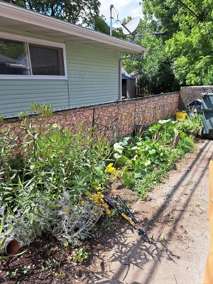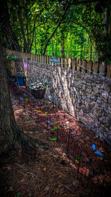 This is my second faux stone privacy fence in two years. The first one was up year around and faded and split in places but I liked it so much I am replacing it with another. "My own little oasis in my small town setting."
