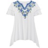 This Stylish Woven Top Is Dressed Up With Feminine, Double Layer Flutter Sleeves And Beautiful Floral Embroidered Details Along The Neckline. It Has A V-Neckline With A Sharkbite Hem And Is Easy To Dress Up Or Down. Approx. 29"L. Machine Wash. Rayon; Imported. Choose: Lilac Or Cornflower Blue. Available In: M(10-12), L(14-16), Xl(18-20) Or Xxl(22-24).