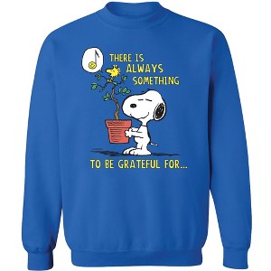 This Delightful Sweatshirt Is A Great Reminder That "There Is Always Something To Be Grateful For". Snoopy Carries A Plant That's The Perfect Perch For His Best Friend, Woodstock. This Cotton Sweatshirt Has Long Sleeves And A Crew Neckline. Machine Wash. Cotton; Imported. Choose: Unisex M(38-40), L(42-44), Xl(46-48) Or Xxl(50-52).