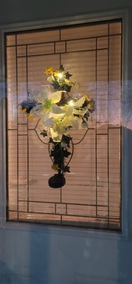 I use the cross on family graves and add one yellow lily on one side of the cross and a white lily on the other side. It is very pretty.
