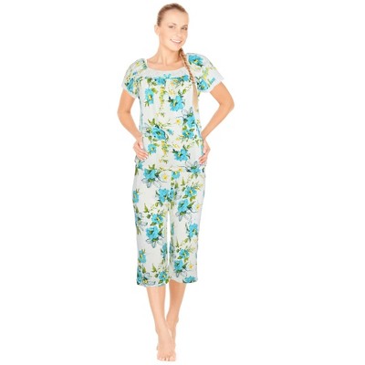 This Super Soft Knit Pajama Set Features A Short Sleeve Top With An Easy-Fit And 2- Button Henley Placket. The Striped Capri Bottoms Have An Elasticized Waist, A Tassel Drawstring And Decorative Stitching On The Pockets. Top Is Approx. 25"L And Inseam Is 23"L. Machine Wash. Polyester And Elastane; Imported. 2-Piece Set. Choose: Blue, Mint Or Pink. Available In: M(10-12), L(14-16), Xl(18-20) Or Xxl(22-24).