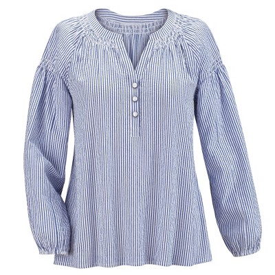 Collections Etc Striped Trimmed Polo Top