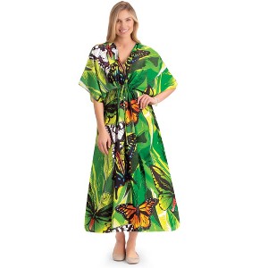 Collections Etc Tropical Butterfly Drawstring V-Neck Caftan - 1 of 4