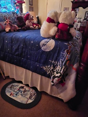 I used this snowman braided rug in my upstairs bathroom in front of the sink. It goes great with the snowman towel sets I bought, perfect match. With this I also added the 3 piece diamond border bath rug set in blue which all the colors matched great. It really brightened up my bathroom for the winter.