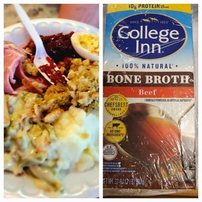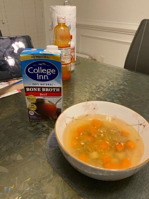 - Rich Flavor: College Inn Beef Bone Broth is crafted from slowly simmered beef and bones, farm grown vegetables and a unique blend of seasonings, turning ordinary meals into something special.
