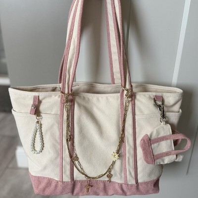 [This review was collected as part of a promotion.] This tote bag charm is too cute! I ordered the light blue to rep my alma mater, and I am so happy I did. This is the perfect dupe for the ones made by those two companies known for their totes. I was pleasantly surprised to find out that this tiny bag features a zipper. I was able to fit my car fob, house key, and driver's license inside and zip it up. Cash and your keys would also work. Be right back--off to buy the big tote so the charm tote doesn't get lonely! I received an incentive to write this review.