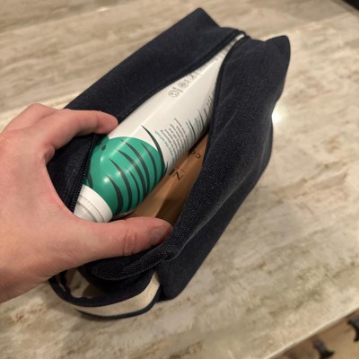 Holds all my travel bottles and containers. Oversized so I don’t need a second bag.