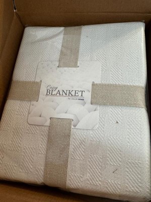 [This review was collected as part of a promotion.] This 100% cotton blanket is soft and breathable. The dimensions are 90” x 90” and is indeed very cozy! I have washed it twice now, and it has held up perfectly. The white color goes with all decor, which makes it a great gift.
