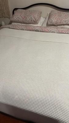 [This review was collected as part of a promotion.] This blanket design is so pretty and looks great on my bed! My husband runs hot at night, so this is perfect for a breathable yet cozy blanket! The waffle knit is so pretty and surprisingly soft! Looks great on the end of my bed! I cannot attest to the durability just yet as I haven’t washed it, but I’m sure a gently wash and dry would keep it looking good as new!
