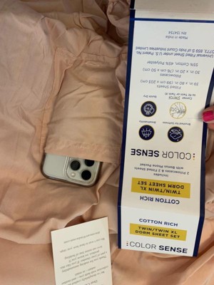 [This review was collected as part of a promotion.] I recently got a chance to try the Color Sense Twin/Twin XL Dorm Sheet Set, and I’m really happy with my first experience! The fabric feels soft and comfortable, and the cotton-rich blend gives it a nice balance between breathability and durability. The fitted sheets have a great stretch, making it easy to put on my mattress without struggling. One of my favorite features is the built-in phone pocket—such a convenient touch for keeping my phone within reach at night. Plus, the quick-dry material makes laundry a breeze. Overall, this is a fantastic set for dorms or small beds, and I would definitely recommend it!