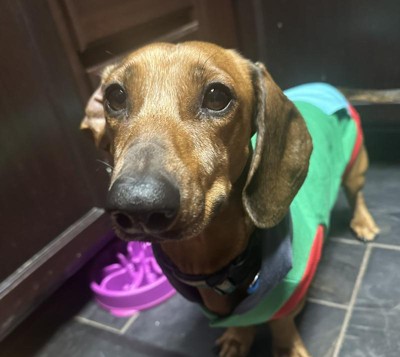 It is so cute and fits my standard dachshund!