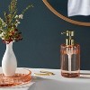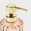 Create a delightful bathroom setting with the Colored Glass Soap Pump from Threshold™. This pink soap pump is made with glass and a gold-tone pump for easy integration into your existing decor style. Compatible with lotion, this soap pump looks great alone or when paired with coordinating pink bath tray.
