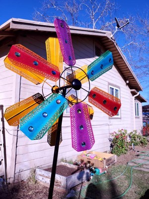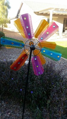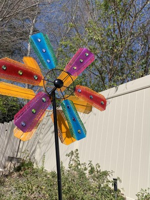 Colorful Bejeweled Metal Windmill Spinner Garden Stake - Alpine Corporation: Decorative Yard Art, Iron Crafted, Multicolored Gems