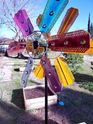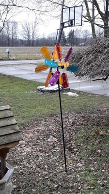 This is a colorful addition to our yard near our vegetable garden. It spins and twirls nicely in the wind. Fun to look at even when there is is no breeze.