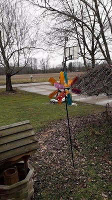 [This review was collected as part of a promotion.] Wanted to add some fun and vibrant color to our backyard and this stake did the trick. Adding great color and when the sun hits the gems it sparkles while it spins. Was a little taller than I had wanted once assembled so I removed one of the extensions making it a little shorter in height allowing us to see it spinning out our kitchen window. It has a nice heavy duty stake making it nice and sturdy should be having a really windy day. This a great addition to our backyard .
