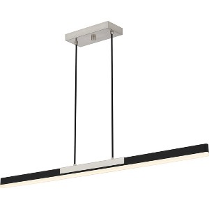 Create a sleek and contemporary look with Colter chandeliers. The simple linear frame comes alive through an integrated LED light source, emitting a soft glow. Choose the brushed nickel finish with black accents for a classic look - or choose the brushed gold with wood-tone accents for a slightly retro feel. Part of the popular Platinum by Quoizel series, Colter makes the perfect statement over any kitchen island or table.
