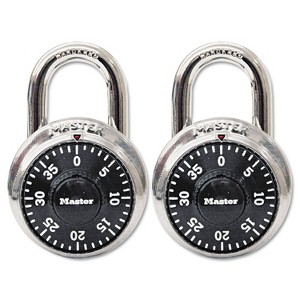 Combination Lock, Stainless Steel, 1.87" Wide, Silver/Black, 2/Pack