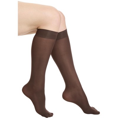 These sheer socks hit right below the knee, using an extra-wide, soft comfort top that feels good and avoids slipping..