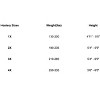 | 2X | 180-235 | 5'4'' - 5'9'' |