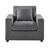 Transform your living space with the stylish and comfortable Casella Modern Arm Chair. Choose from plush, durable fabric options that are both family and pet friendly, and seamlessly blend with most any color scheme or décor style. Removable cushion covers can be easily cleaned with a low-temperature wash and ironed on low (lay flat to dry, no dryer), or dry cleaned for hassle-free maintenance. The extra plush cushion topper features a foam core wrapped in a 50/50 blend of down feathers and poly fiber, providing unparalleled comfort and support. Removable round solid wood legs, finished in sleek black, add a touch of modern elegance to your living space. No-sag sinuous springs built into the frame offer additional cushion support, ensuring lasting comfort and durability. Add a touch of modern sophistication to your home with the Casella Modern Arm Chair, where style meets comfort and durability.