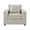 Transform your living space with the stylish and comfortable Casella Modern Arm Chair. Choose from plush, durable fabric options that are both family and pet friendly, and seamlessly blend with most any color scheme or décor style. Removable cushion covers can be easily cleaned with a low-temperature wash and ironed on low (lay flat to dry, no dryer), or dry cleaned for hassle-free maintenance. The extra plush cushion topper features a foam core wrapped in a 50/50 blend of down feathers and poly fiber, providing unparalleled comfort and support. Removable round solid wood legs, finished in sleek black, add a touch of modern elegance to your living space. No-sag sinuous springs built into the frame offer additional cushion support, ensuring lasting comfort and durability. Add a touch of modern sophistication to your home with the Casella Modern Arm Chair, where style meets comfort and durability.