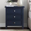 Introducing our exquisite Lennon 3-Drawer Nightstand, crafted to elevate your bedroom decor effortlessly. Available in three captivating finishes – Midnight Blue for a touch of sophistication, Vintage Green for a hint of nostalgia, or Soft White for timeless elegance. Constructed with precision using French dovetail drawer construction, our nightstand ensures durability and longevity. Say goodbye to noisy drawers with our smooth metal side mounted drawer glides, providing seamless opening and closing every time. Enhanced with framed end panels and tapered legs, this nightstand exudes charm and refinement, adding character to any space. And the best part? No assembly required! Simply unbox and enjoy the convenience of instant style and storage. Revitalize your bedroom oasis with our 3-Drawer Nightstand – where beauty meets functionality.