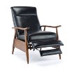 A clean classic recliner is what you get with the Solaris wood arm push back chair. Featuring chestnut brown wood arms with tapered legs this comfortable recliner adds a modern look to any room. The innovative leather gel upholstery provides the soft touch of a top grain leather at a great value.