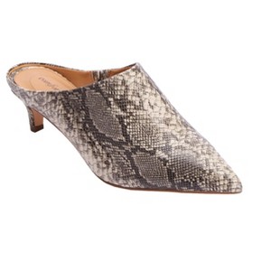 A smooth, supple leather-like upper distinguishes a streamlined mule in an ultra-stylish kitten heel silhouette.