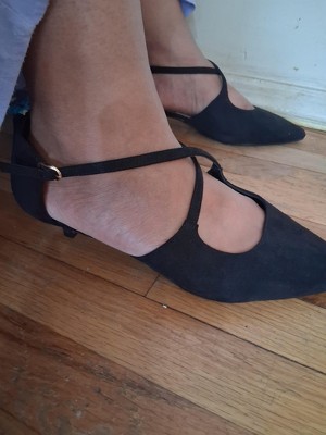 So comfortable! Toes are not squished in the point of the shoe. The low heel is perfect for women who struggle with balance. I love that the heel back has a zipper, so you don't have to undo the buckle to put it on and take it off. Stylish straps, fabric is smooth to the touch. Gonna check for other colors as well!
