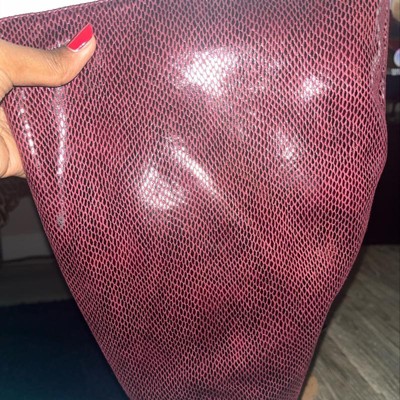 The shoe that arrived had the same shape but the snake skin look in the photo is non existent. It looks like black pleather with burgundy fishnet on top. Very disappointing.