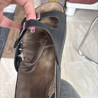 • Padded footbed molds to your foot and gets comfortable with more wear