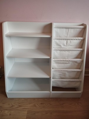 This bookcase is gorgeous. It's modern and sleek and so practical! We love the two different sides, the shelves can be used for stuffed animals and toys while the book slots can easily display books. Or in our case we are using the book slots for our younger kid's picture books, and the bookshelves for our older kid's thicker books. So glad we got this, it is really going to enhance their room and organize their books so beautifully! We are so excited to fill it up!