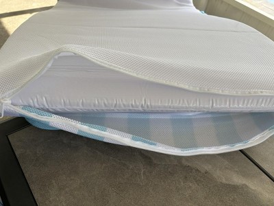Comfy Floats No Inflate Roll Up Sun Bed Single Person Water Lounger Pool and Lake Float with Pillow Headrest & Removable Soft Mesh Cover, Blue/White
