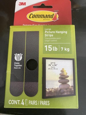 - MAXIMUM FRAME SIZE 24 X 36 INCHES: One package includes 20 pairs (40 strips total) of the Command Large Picture Hanging Strips; four wall adhesive strip pairs hold 16 pounds; maximum frame of 24 x 36 inches