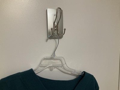 [This review was collected as part of a promotion.] I received this as a free sample. This satin triple 3M hook has been a surprisingly solid little addition to our space. It gives you three separate hanging spots, though in reality, you’ll probably only use two at a time unless it’s for lighter items. It’s compact, so it’s not meant for heavy coats or bulky bags, but for things like a purse and a couple of jackets—or in our case, bathroom towels—it works perfectly. We’ve been testing it with our larger towels, and so far it’s held up just fine with two at a time. I wouldn’t overload it, but it definitely feels sturdy for that use. I like that it actually looks nice too. The satin silver has a clean, modern look. We also tried a black version, and I honestly like that one a bit better since it matches our decor, but the silver is just as good in terms of quality. No tarnishing so far, even in the bathroom’s humidity. But only time will tell, since it usually takes a while for things to tarnish. One of my favorite things is how easy it is to remove without damaging the paint. The connectors let it come off cleanly, which is a big plus if you don’t want permanent holes in your wall. Installation was quick and hassle-free, and it’s been sticking really well even on bathroom walls. And our bathroom doesn’t have a fan, so it gets super humid. Even with that, it hasn’t detached from the wall. Overall, it’s a strong, easy to install hook that looks great and does the job. Just be realistic about the weight and size of what you hang.