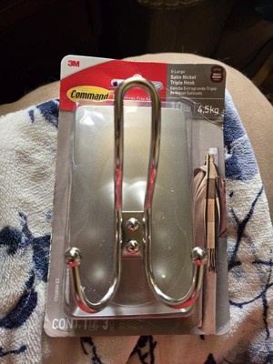 - INCLUDES - 2 X-Large Satin Nickel Triple Hook and 6 adhesive strips; 1 X-Large hook holds 10 lbs