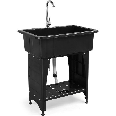 Commercial Double Bowl Stainless Steel Utility Sink - Heavy-Duty Workstation with Hot/Cold Faucet (30"/33"/47")