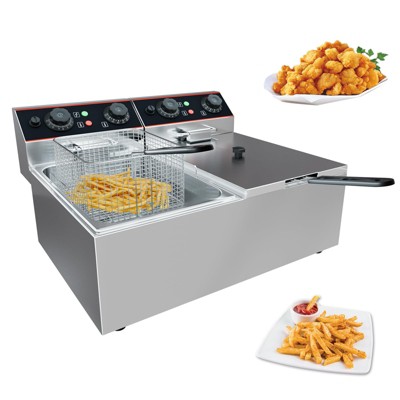 Commercial Electric Countertop Deep Fryer with Dual Detachable Oil Tanks, 3000W