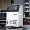 - The ice maker operates with a LCD panel for you to easy control machine,the thickness of ice cubes can be adjusted by increasing or decreasing ice-making time, and one press to auto cleaning function is designed to clean the machine more convenient.