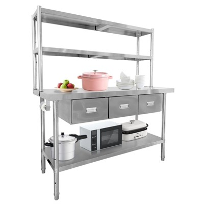 Commercial Stainless Steel Folding Table, 48 x 24 Inch Kitchen Island Worktable for Food Prep, Heavy-Duty Workstation for Garage & Camp
