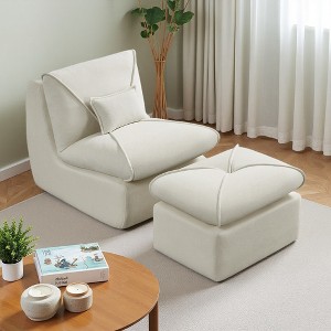 Compact Chenille Upholstered Lounge Chair with Ottoman