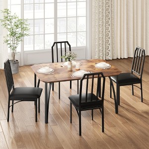 This compact dining table set for four offers a modern, space-saving solution for small apartments or homes. Chamfered edges minimize sharp corners for added safety and a contemporary look, while the cushioned chairs ensure comfortable seating for daily meals or gatherings. Crafted from durable materials, the set fits seamlessly in kitchens, dining rooms, or any area where space is at a premium. The elegant design blends easily with various decor styles.