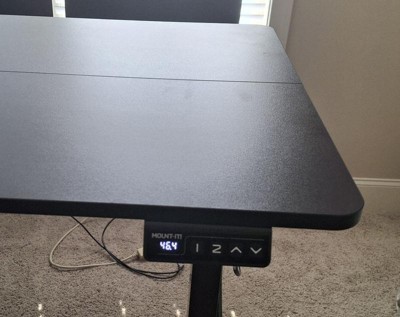 Elevate your workspace with this compact electric standing desk, designed to enhance both your comfort and productivity, even when space is limited. Its adjustable height range from 28.7" to 46.5" allows you to effortlessly switch between sitting and standing, promoting better posture and reducing fatigue. The compact 40" tabletop is perfect for smaller spaces like apartments, dorm rooms or shared workspaces, while offering enough room for your work essentials. Available in stylish Black or Hazelnut finishes, the desktop complements any dcor. With an easy-to-use digital control panel and two programmable memory presets, finding your ideal working height is quick and easy. Its quiet operation ensures smooth transitions without disturbing your focus or those around you. Built for durability, the sturdy steel frame supports up to 154 lbs, while the sleek desktop with rounded edges provides a stable and reliable surface. Efficient height adjustment at 0.8 inches per second keeps up with your workflow, all powered by a dependable motor with low energy use.