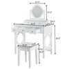 This compact vanity set features a reversible four-leaf mirror, cushioned stool, and multiple drawers, making it an elegant and space-saving solution for bedrooms and apartments.