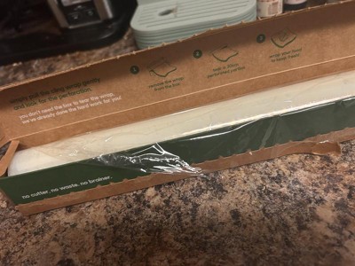 The actual wrap works great and is compostable. (I received this product for free from the Hey Bullseye™ program in exchange for my honest review.) It is a wonderful concept, but the box is flimsy and it is almost impossible to tear the wrap at a preferred length. If you can find the pre-perforated markings on the wrap, it does tear apart easier at those specific locations. Sadly, I had difficulty seeing the pre-perforated markings on the wrap.
