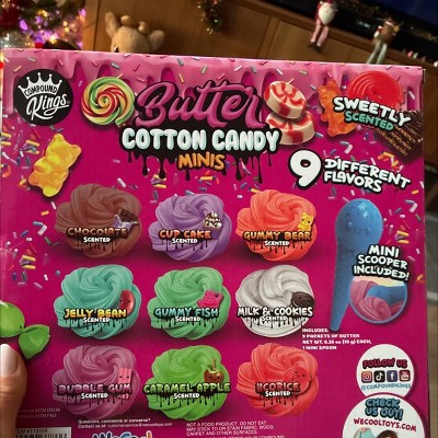 Compound Kings Butter Cotton Candy Minis Variety Pack includes 9 different Butter flavors and a mini scooper! Bubble Gum, Gummy Fish, Cupcake, Gummy Bear, Jelly Bean, Caramel Apple, Licorice, Chocolate and Milk & Cookies! The compounds can be stored in their cute mini sized containers! These compounds are sweetly scented! Discover a hands-on, sensory experience with our Compound Kings compounds that is fun and therapeutic activity for kids age 4+ and adults of all ages!