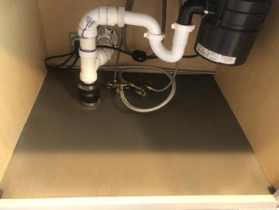 Con-Tact Brand Under Sink Mat protects your cabinet base from water-marks, stains, scratches or damage caused by moisture. The Under Sink Mat is water resistant and non-adhesive. The textured surface provides durable protection, is easy to install and wipes clean. The extra large mat measures 24 inches x 48 inches, but can be cut to fit smaller areas. Great for use in Kitchens, Bathrooms and Laundry Rooms. Available in Graphite gray. BPA Free.